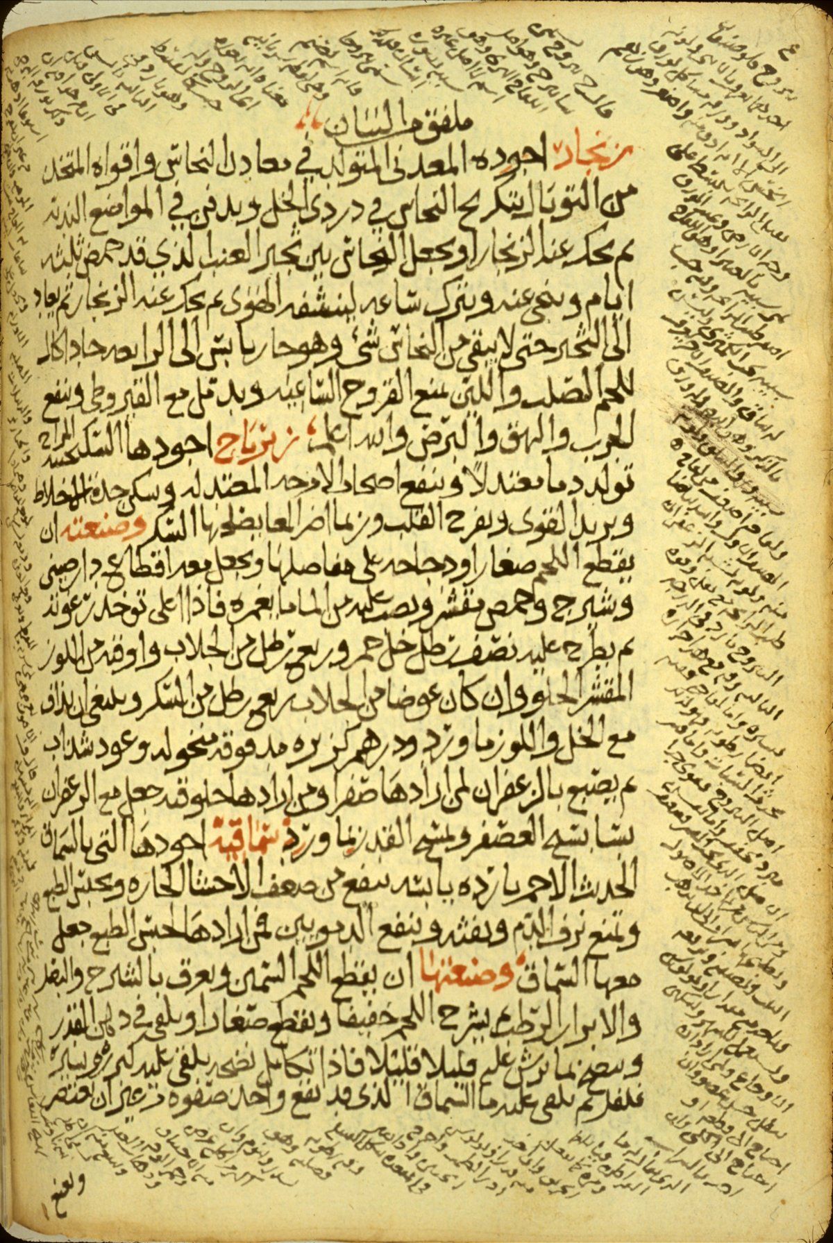 The opening folio of an anonymous compilation on material medica said to be taken from al-Bayān, presumably a reference to the popular pharmaceutical compendium Minhaj al-Bayān by Ibn Jazlah (d. 1100/493). The copy is highly annotated. It is undated and unsigned but appears to have been made in the 18th century.