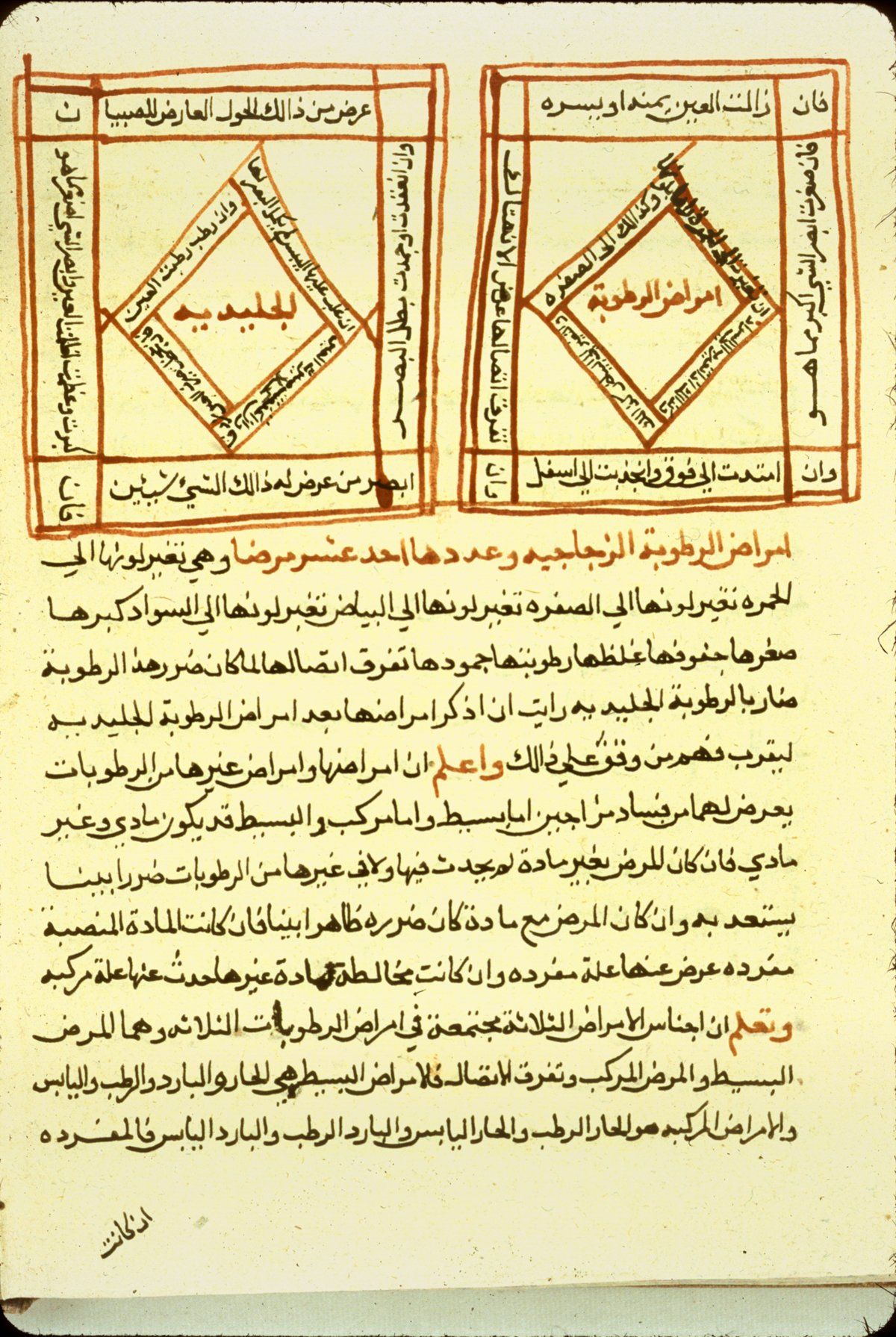 The lower third of this folio contains the beginning of an Arabic treatise on weakness of vision and its treatment, apparently by the Spanish physician Ibn Wāfid al-Lakhmī, who died in 1074/467. This fragmentary copy is the only part of the treatise preserved today. Undated copy, probably 13th-14th century.